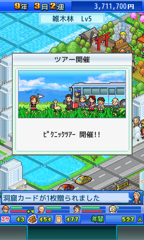 最初は小さなマップに案内所がひとつあるだけです。 観光客は案内所のまわりにある自然につられて休日をエンジョイしにきます。自然が豊かになるほど多くの観光客がやってきます。 ゲームが進むと民宿や電車などの交通機関も登場し、『お花見』 『鍾乳洞探検』 『心霊体験』など観光ツアーも開催され、日本有数の観光地帯へと進化をしていきます。 いくつもある称号をすべて制覇するとエンディングになります。