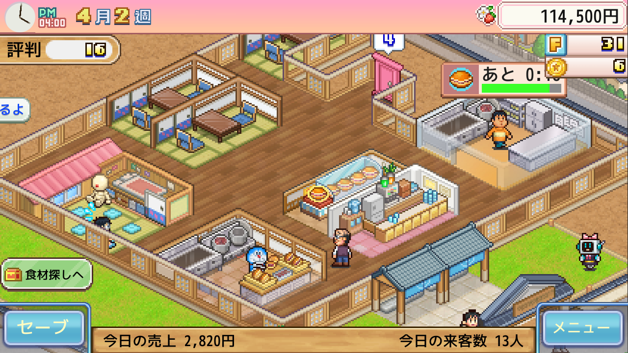 ドラえもん、のび太、いつもの仲間たちと力をあわせてお店を経営していきましょう。