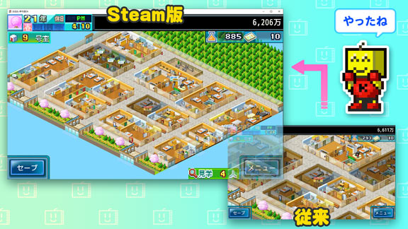 ついに本日Steam®版で5タイトルが配信されました。おめでとう。 ![]() 発売を記念して一部タイトルは4/4までセール中!少しお得にダウンロードできるよ~ん。 チンパンハイテクニック研究所のハイテクノロジーにより、Steam®ではさらに広い画面に対応しました。渾身のマップを一望してうっとりするのも楽しみ方の一つですね。 | |
