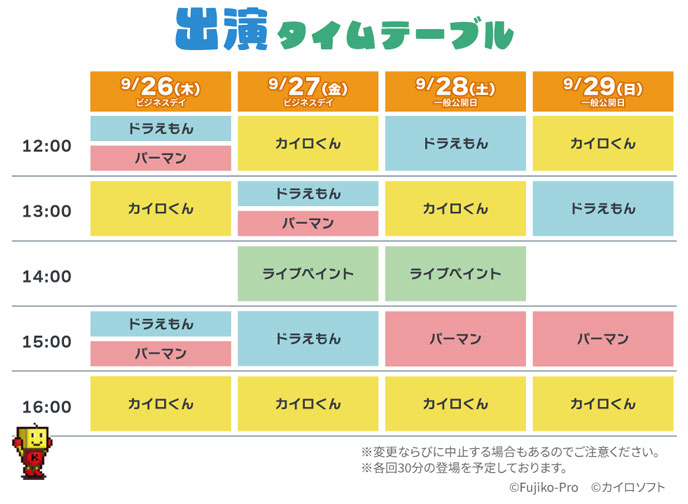 東京ゲームショウはついに今週開催!カイロソフトブースにスペシャルゲストのドラえもんとパーマンが登場するよ!![]() 出演タイムスケジュールは特設サイトでも見られるのでチェックしてみてね。 ついでに僕とも握手してくれると嬉ぴっぴです ![]() |