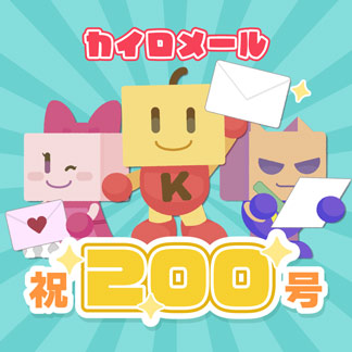 なんと…カイロメールは今回で200号!おめでとう![]() 記念にイラストをプレゼントするよーん。いつも読んでくれてありがとう。 今回は大きなメルマガタオルが作られたので、1000号の時はメルマガビル建設を目指してがんばります。これからも気まぐれに送るので気が向いたら読んでね ![]() |