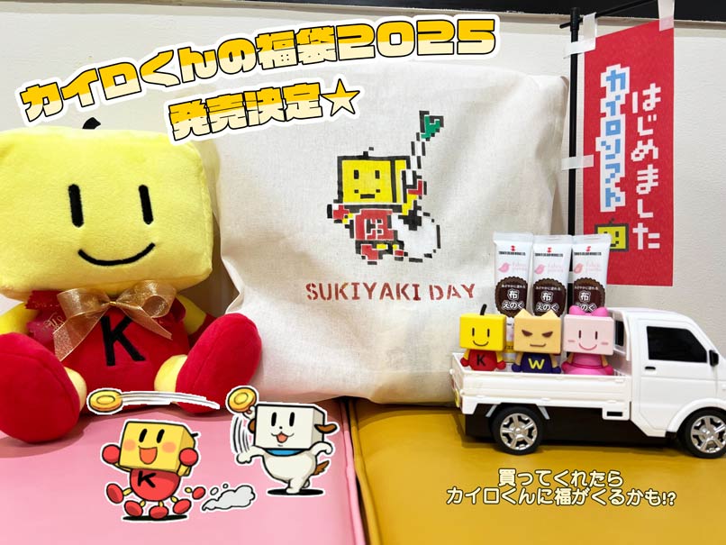 オフィスが手狭になってきたので在庫処分大放出!『カイロくんの福袋』を数量限定で発売するよーん![]() おなじみのグッズやイベントで配布した非売品アイテム、更にカイロソフティによる直筆色紙も封入! ひしょ子さん手作りの特製バッグにいれてお届けします。(すき焼きは含まれません) この後19時よりメルマガ会員先行販売!買ってくれるとカイロくんが儲かっておせちに伊勢海老が入るぞ