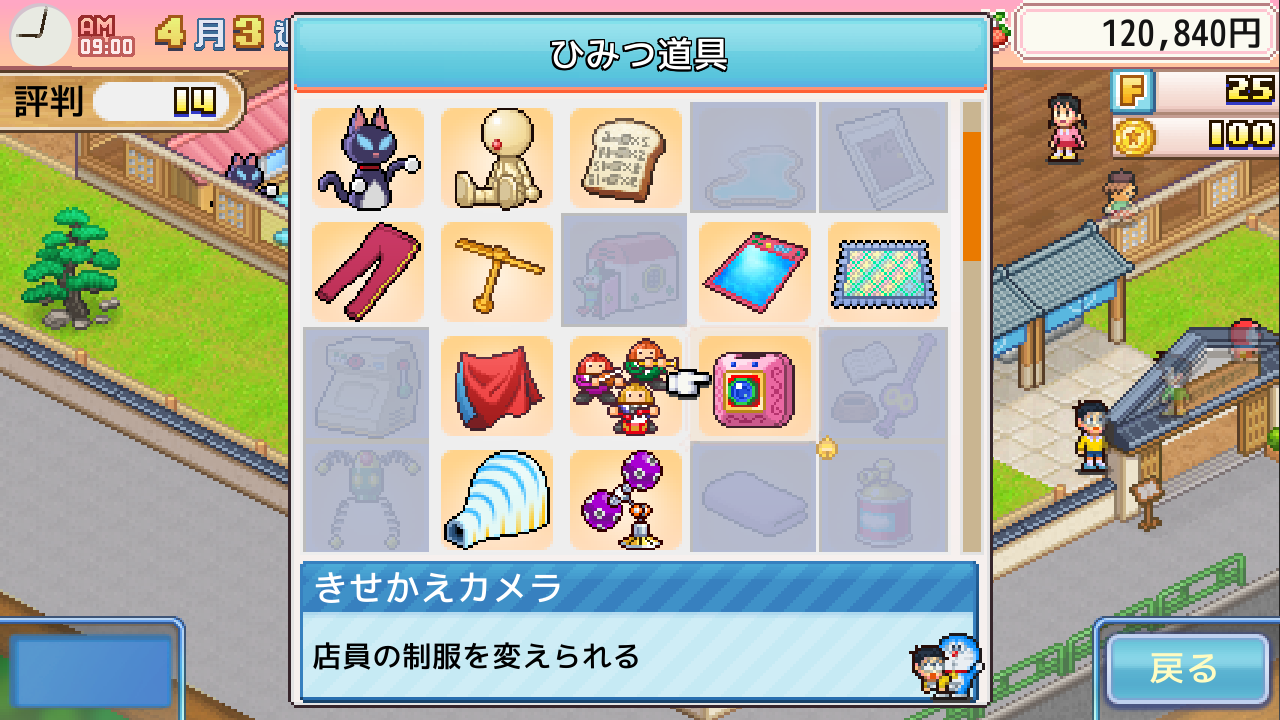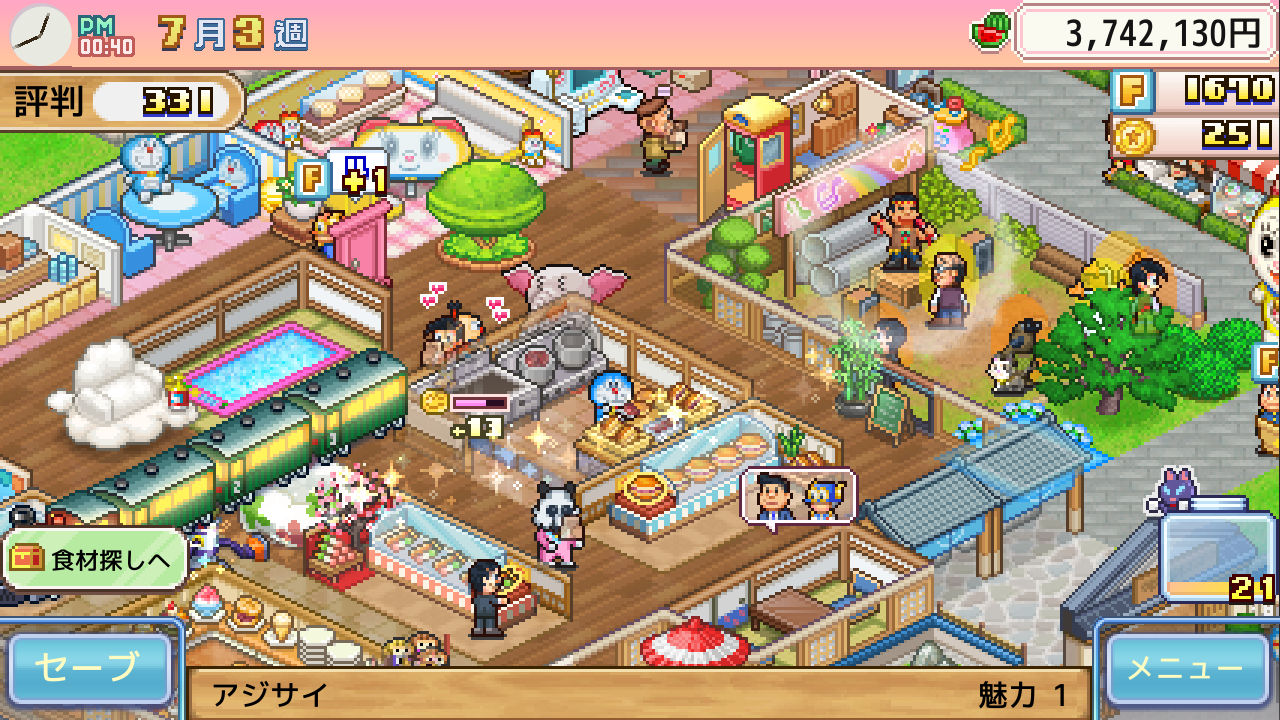 ドラえもん、のび太、いつもの仲間たちと力をあわせてお店を経営していきましょう。
